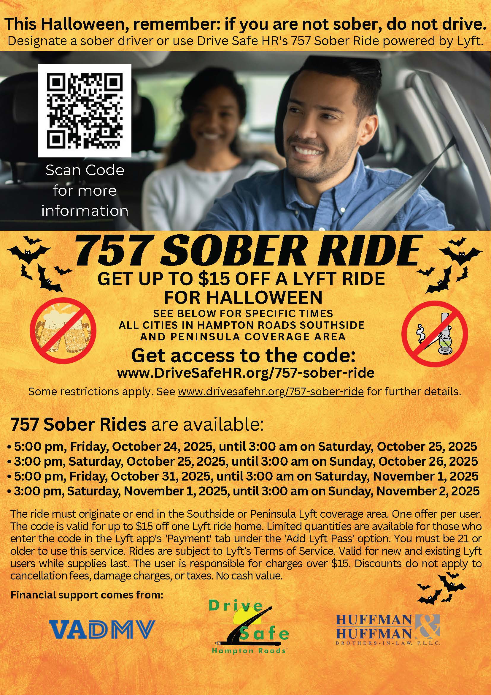 Supporters of the 2025 757 Sober Ride campaigns are Drive Safe Hampton Roads and Huffman & Huffman Brothers-in-Law. Campaigns are funded in part by a grant from the Virginia Department of Motor Vehicles.