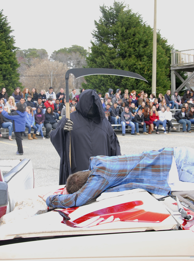 The student body of Tabb High School gathered in the school’s parking lot on a cold and cloudy Tuesday to see blood, broken glass and one of their own screaming from a wrecked pick-up truck.