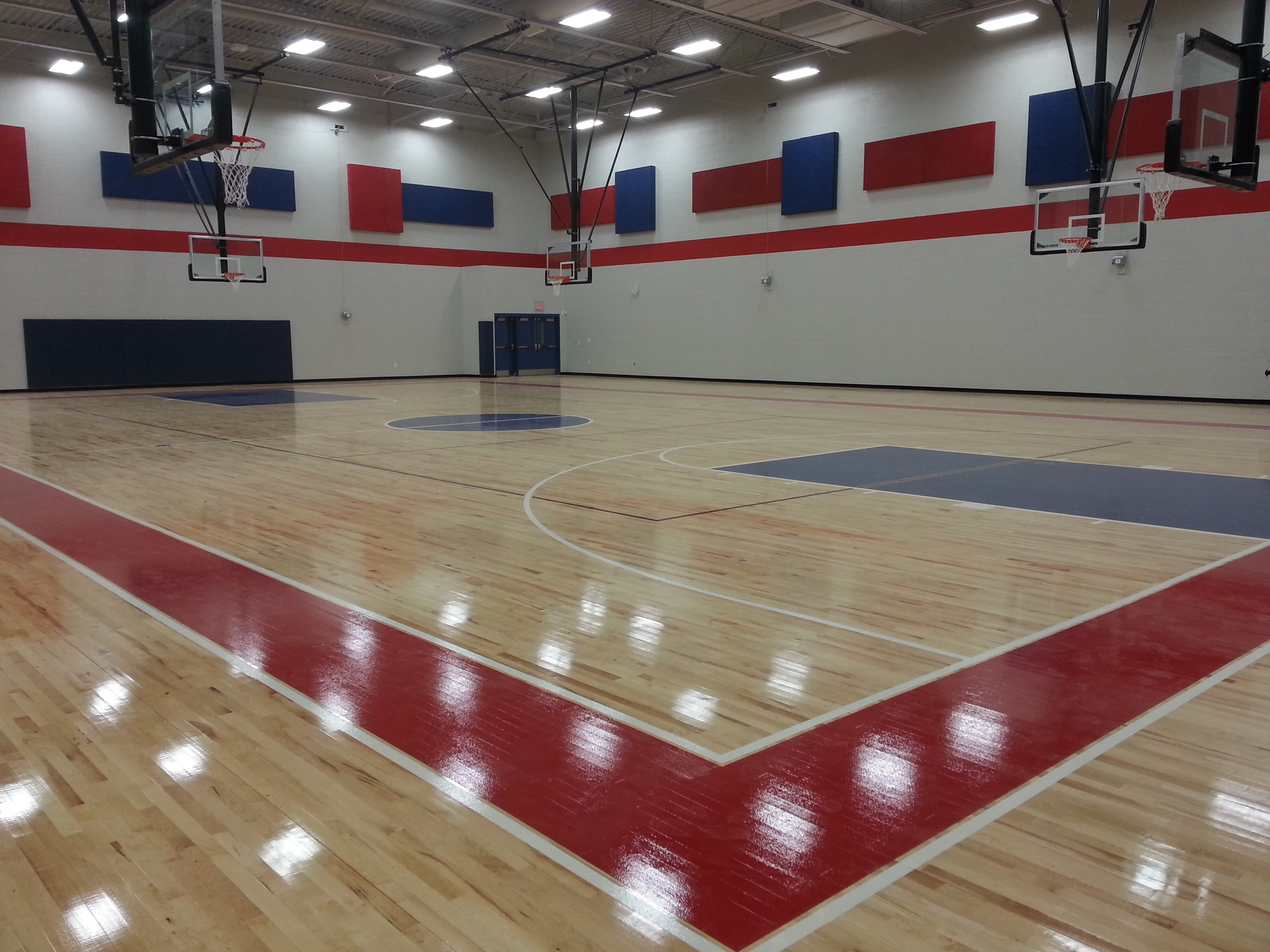 In September 2013 after several weather-related delays over the summer, crews had all the walls up, the locker rooms put together and gym equipment — like basketball goals — on its way to the site. Installation of the gym floor, which took place over the last few months, had to wait until the building was sealed and all the doors were in place to prevent moisture from ruining the wood.