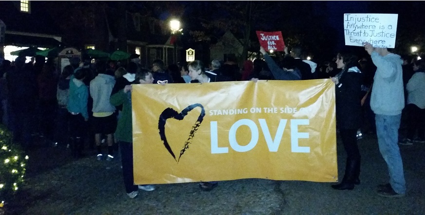 Harris told the crowd as the night fell they were all here not only to protest the grand jury’s decision but also to be seen and heard by those in Williamsburg who may be unaware of the racial profiling black Americans experience on a daily basis.