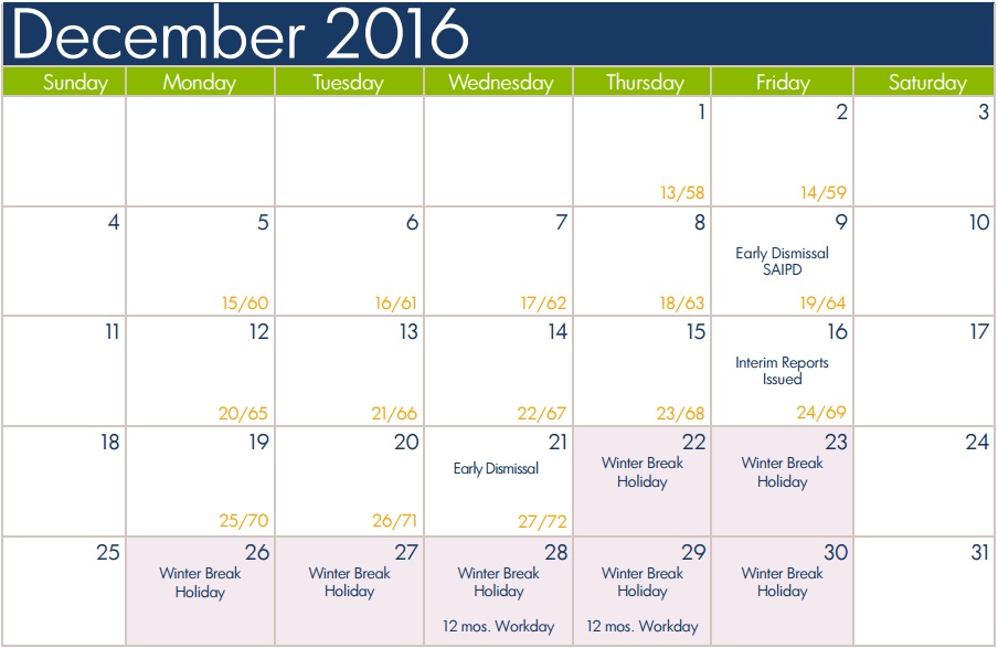 Dec. 21 will be the last day of school before winter break, which will stretch eight days Dec. 22 through Jan. 2.