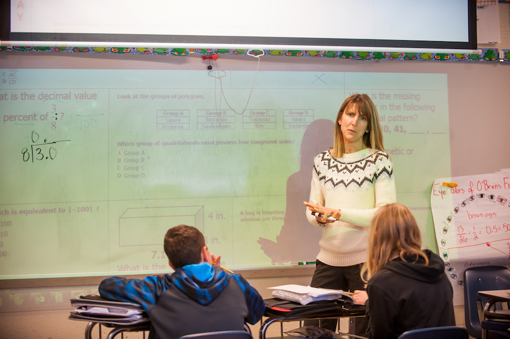 O’Brien said the block schedule at Yorktown Middle, which offers a 90-minute math class five days a week, helps engage students often and in a variety of ways that allows her to differentiate the curriculum to cater to all levels of students, utilizing hands-on activities, guided group assignments, peer tutoring, video learning and traditional lecture.