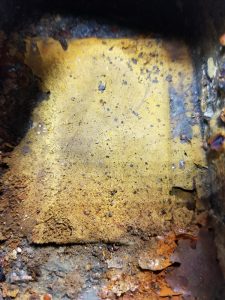 Once the lid was removed, they saw the fossilized remains of paper. Chartrand said rust on the box likely exposed its contents to water, which over time caused what may have been a note from a century ago to deteriorate.