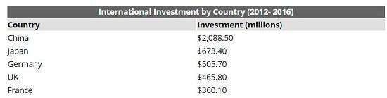 Chinese investments in Virginia are three times more than any other country