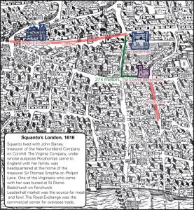 Pocahontas and Squanto lived only a few hundred yards from one another in London, and were also part of the same social circle, according to Rose.