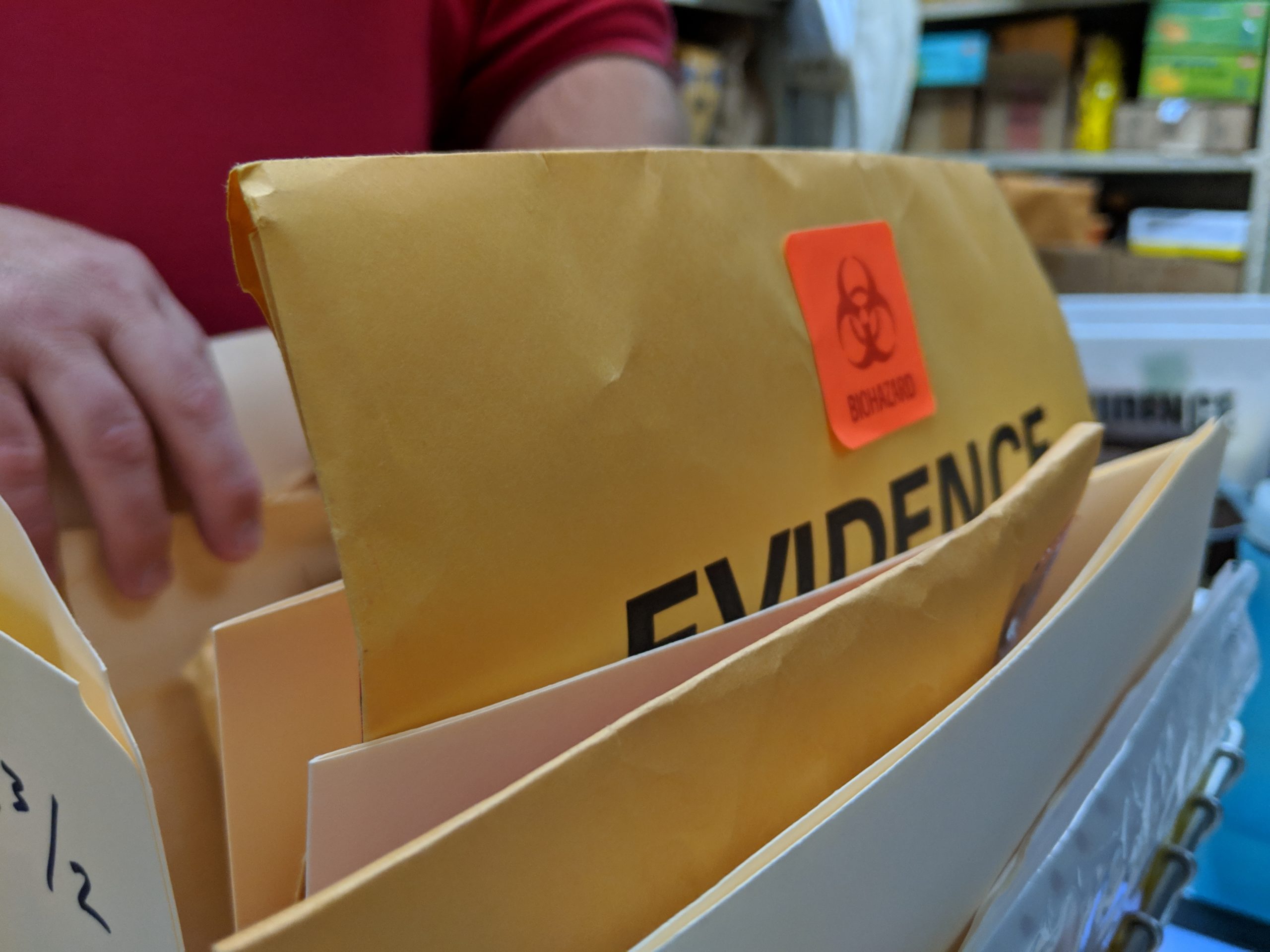 Every move the evidence makes is documented carefully at the bottom of the same receipt, such as when Carlsen transports evidence to and from the Virginia Department of Forensic Science in Richmond.