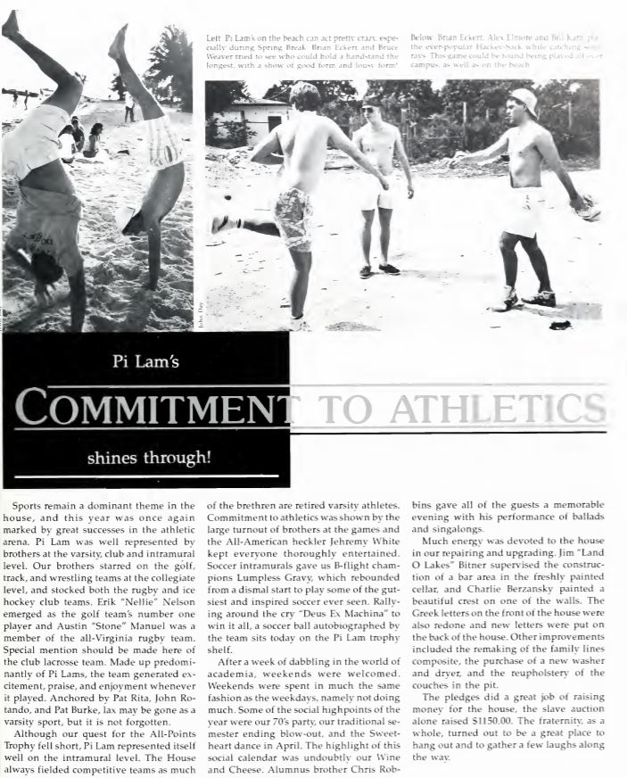 William and Mary’s yearbooks feature descriptions of the fraternity’s activities throughout the years, which included a “slave auction” which raised $1,150 in 1988 and approximately $2,000 in 1989.