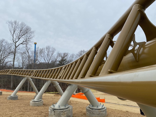 Busch Gardens Williamsburg is unveiling Pantheon little-by-little, revealing the majority of the roller coaster’s track has been constructed and is on schedule to welcome riders in time for spring.