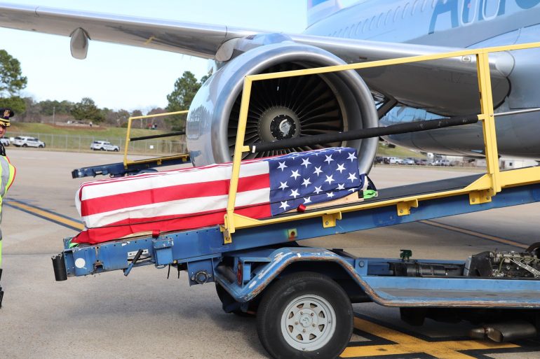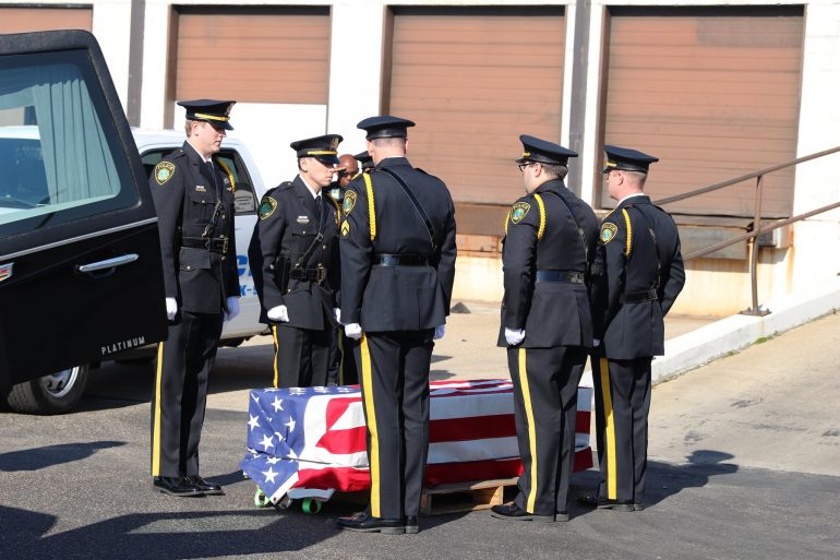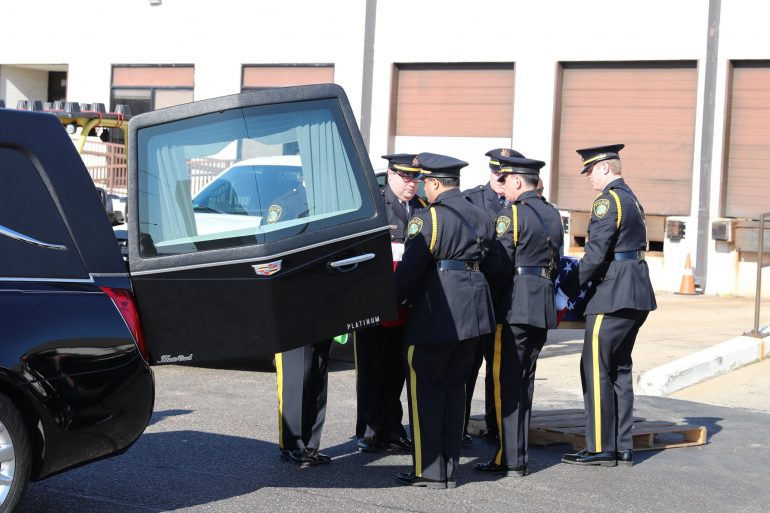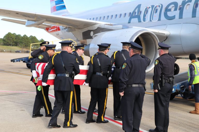 Newport News Police on Tuesday escorted fallen Officer Katie Thyne to Norfolk International Airport for her final trip to her hometown in Pelham, New Hampshire.