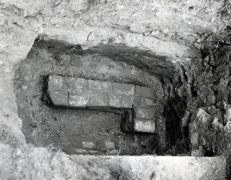 - Older brick foundations immediately north and adjacent to the 1856 church.