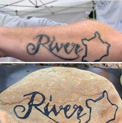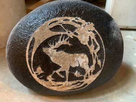 In fact, he spent his 25th anniversary with his wife, Jennifer, picking up stones in several places. But they wanted to write on the stones with pictures of how and where they found them –– so Mark started experimenting on engraving stones.