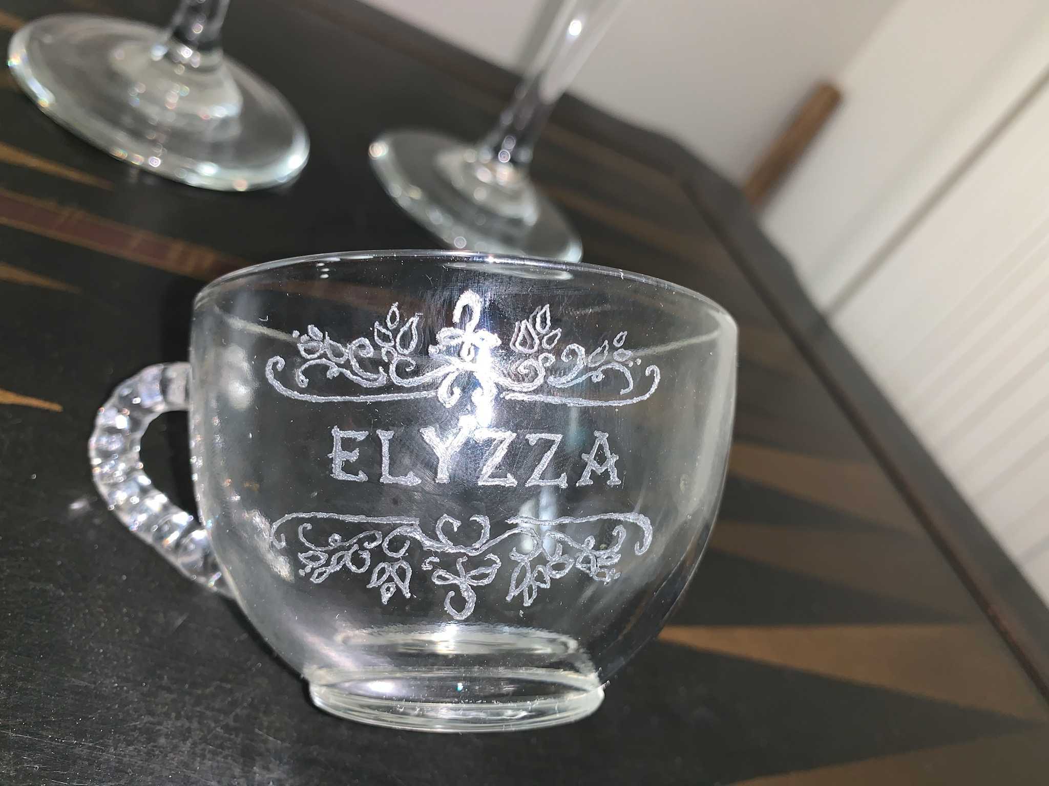 One couple wanted engraved wedding glasses and a smaller cup for their daughter. Another client wanted Mark to put a tattoo of his son’s name on a stone in the shape of Fort Monroe.