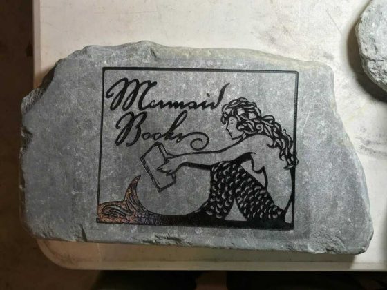 Mark has engraved wine bottles, awards and personalized housewarming gifts. He engraved a 3.5-foot boulder with a man’s address in Richmond and if you stop by Shorty’s Diner at the takeout line, you’ll see his handiwork there, too.