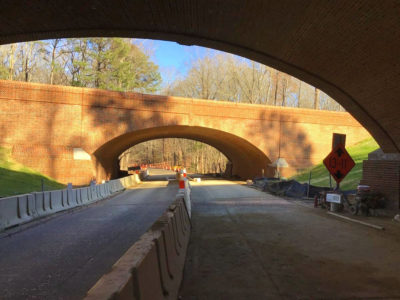 “The lane closure allowed for the safe removal of a portion of existing brickwork and construction of the new custom brickwork and bridge arches on the I-64 overpass bridge over and directly adjacent to the Parkway,” said a statement from the news release.