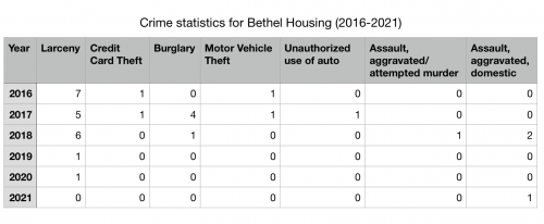 The chart below which shows crime statistics in the housing area from 2016-2021. This information is courtesy of the LexisNexis Community Crime Map.