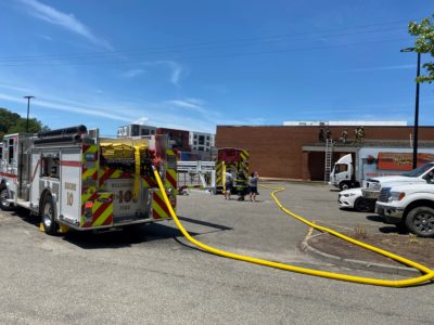 The departments arrived at approximately 12:24 p.m. to the Midtown Row shopping center and found that fire engulfed wooden shingles that were on the side of the building. It took almost two-dozen firefighters half an hour to declare the blaze under control, according to a press release from the City of Williamsburg.