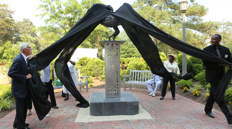 The ceremony also served to celebrate the completion of the Legacy Tribute Garden near Jefferson Hall and to unveil the new “Sankofa Seed” sculpture, an art installation created by Steve Prince, director of engagement and distinguished artist in residence at the Muscarelle Museum of Art, in coordination with Michael Gaynes, a lecturer of art and art history.