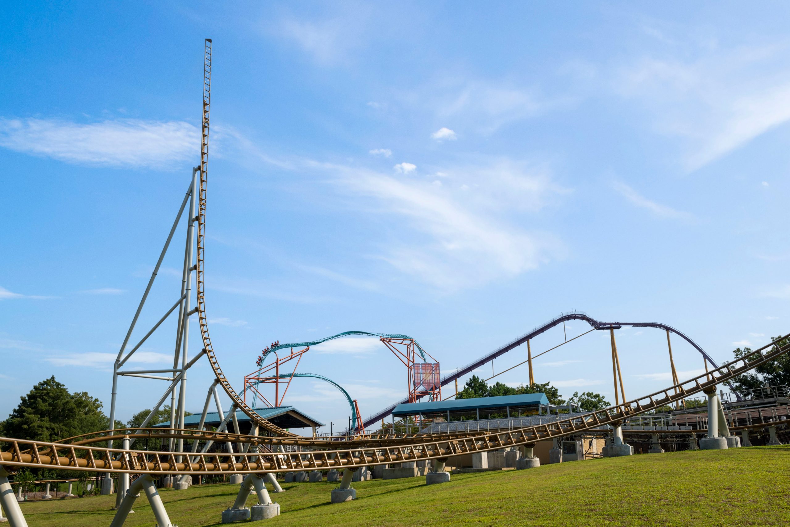 The record-breaking roller coaster manufactured by Liechtenstein-based Intamin is themed for the Roman gods: Pluto, Mercury, Jupiter, Minerva and Neptune, which track elements that are inspired by each god’s mythical powers. According to the release, the coaster features two inversions, four launches, five air-time hills, a 95-degree drop, reach a height of around 180 feet, and a top speed of 73 mph.