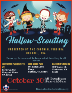 YORKTOWN — The Colonial Virginia Council of the Boy Scouts of America (BSA) is hosting a Halloween-themed information get-together at the Watermen’s Museum.