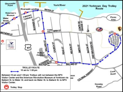 Additionally, the Yorktown Trolley will deviate from the route it normally takes so that it can accommodate transportation for the celebration of the 240th anniversary of the American and French Revolutionary War victory at Yorktown.
