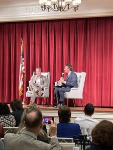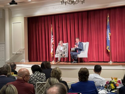 The President and CEO of the Colonial Williamsburg Foundation, Cliff Fleet, joined Youngkin on stage, asking questions on a variety of topics including public education, workforce, local businesses, affordable housing and technology.