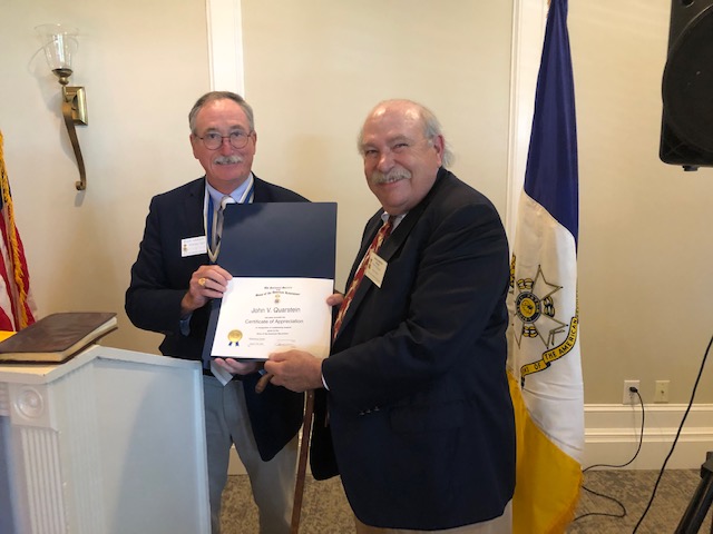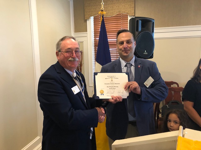 The Williamsburg Chapter of the Sons of the American Revolution took a number of actions at its Aug. 13 meeting. President Bruce Laubach welcomed the organization’s newest member, Alex Johnston. He also presented the SAR Military Service Medal with Vietnam Clasp Veterans Corps Certificate to David Ledbetter and the SAR Military Service Veterans Corps Certificate to Robert Neely. John Quarstein, award winning historian, preservationist and author, was recognized with a Certificate of Appreciation for his presentation about the French Navel victory in 1781, the Battle of the Capes.
