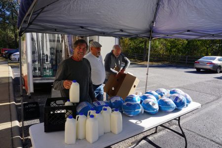 Families also received milk for baking this year, along with a recipe card. Grove Christian Outreach Center put together two of their favorite recipes and families received all the ingredients to make those recipes in their Thanksgiving boxes.