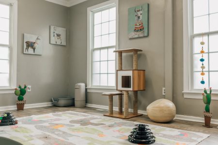 Purrocious Styles has their boarding areas strategically located throughout the site, often in highly trafficked areas, so attention is always being paid to boarding guests. The team also gives room service to boarding guests twice a day. The team also has a vet tech on call 24/7 to monitor kitties staying at Purrocious Styles.