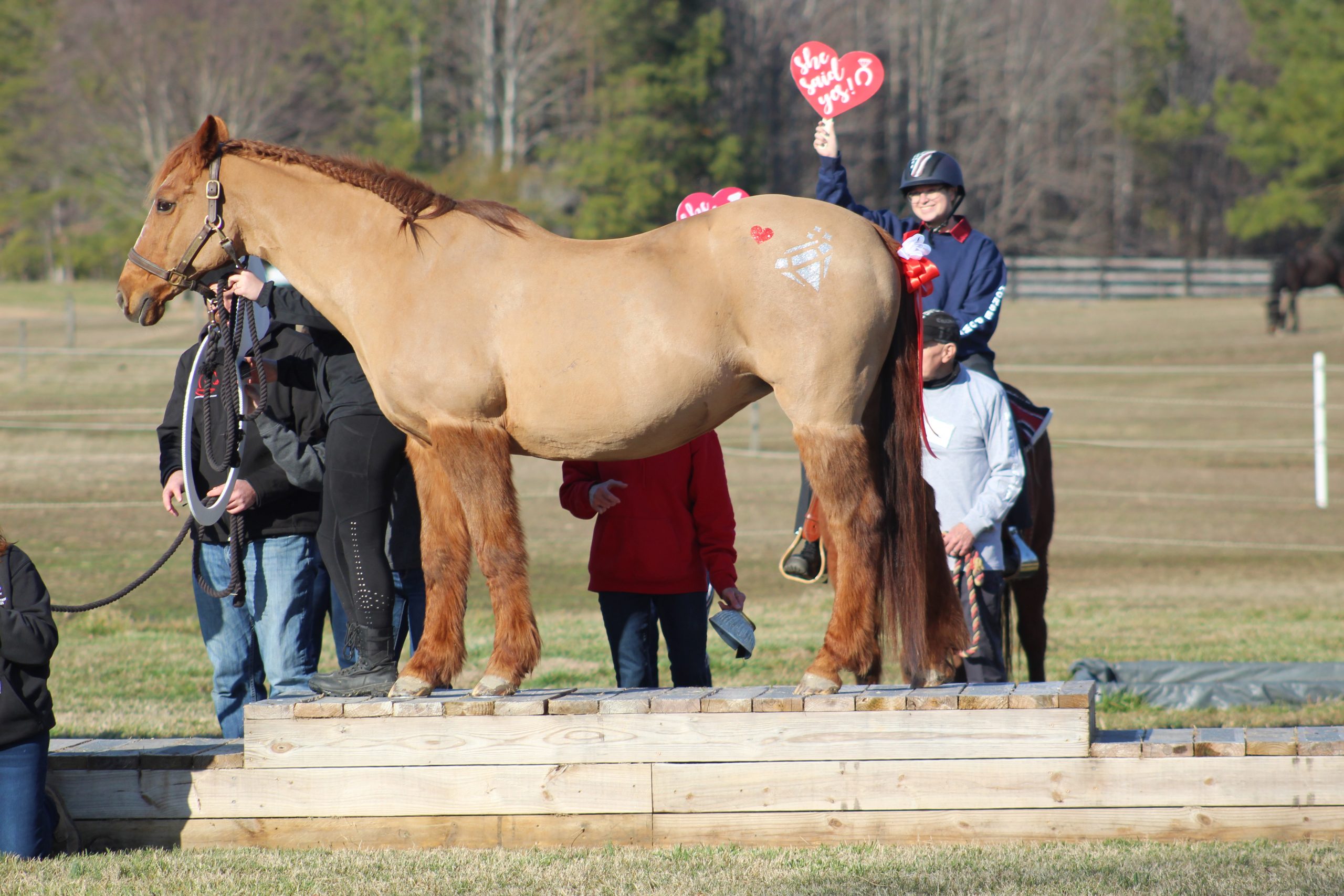 Lark, a 26-year-old Welsh pony quarter horse cross mare, and Tater, a 27-year-old Welsh pony gelding, have been inseparable since arriving at Dreamcatchers in 2008. Tater proposed to Lark on Feb 14 and she happily accepted.