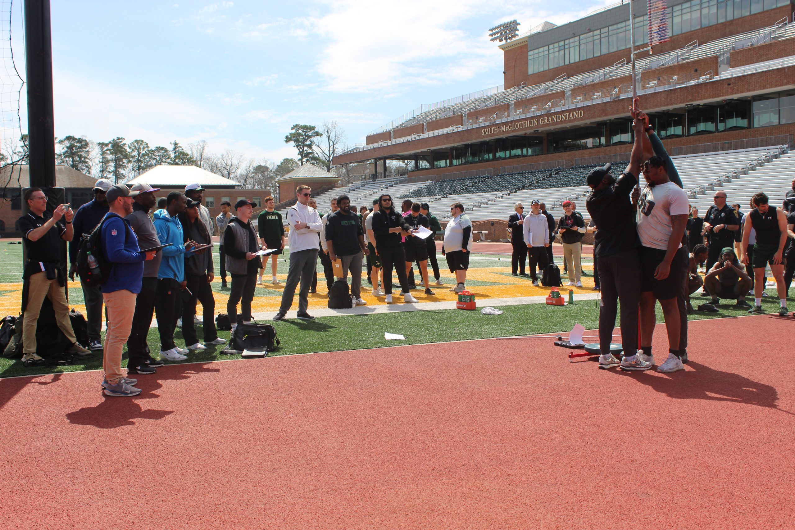 A total of 36 coaches and scouts from 29 different NFL teams, and one CFL team, were on hand at Zable Stadium — a record turnout for the football program.