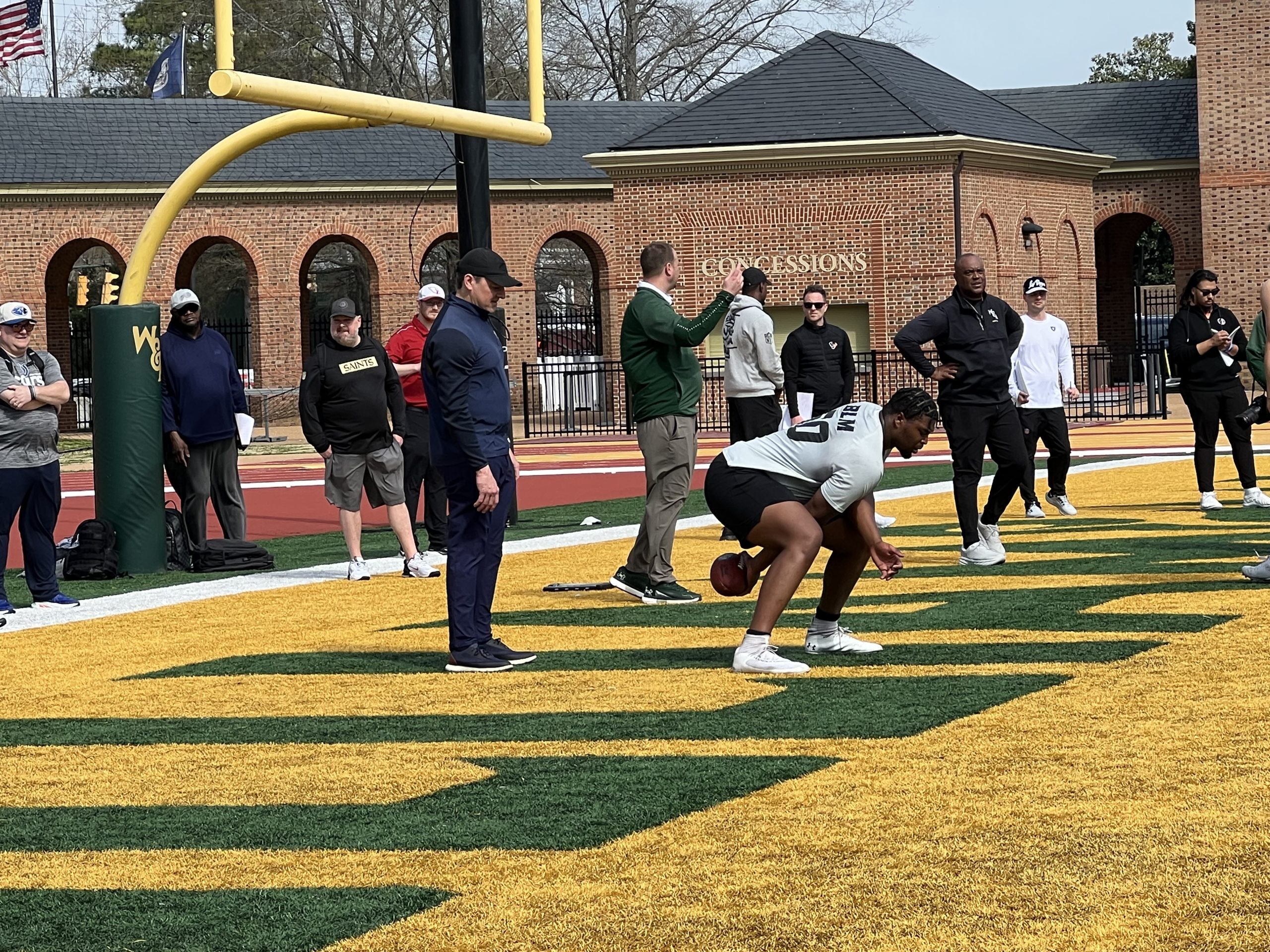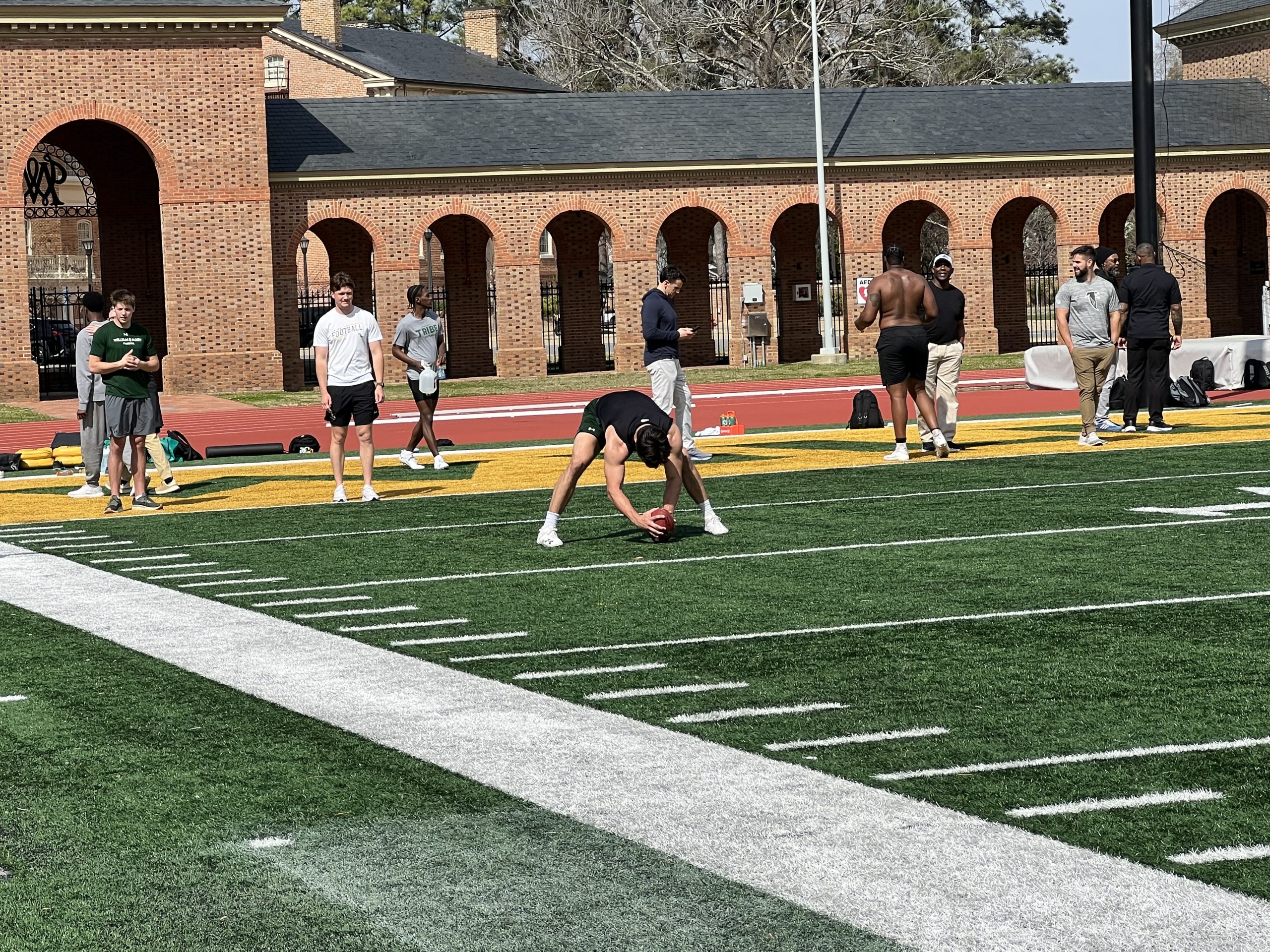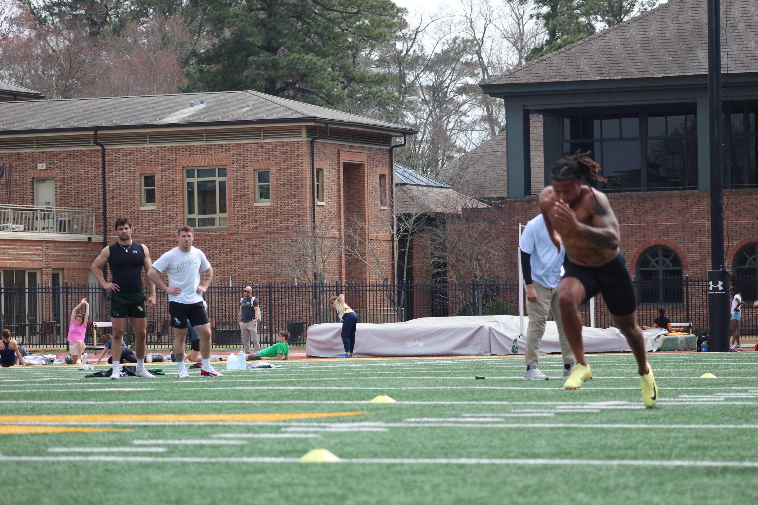 With the first step toward their NFL dreams on the line, working out were offensive lineman Charles Grant, defensive back Marcus Barnes, running back Bronson Yoder, athlete Hollis Mathis, linebacker Quinn Osborne, linebacker/defensive back hybrid Alex Washington, defensive back Jaedon Joyner, long snapper/outside linebacker Jonathan Hammond and wide receiver Matthew Akuchie.