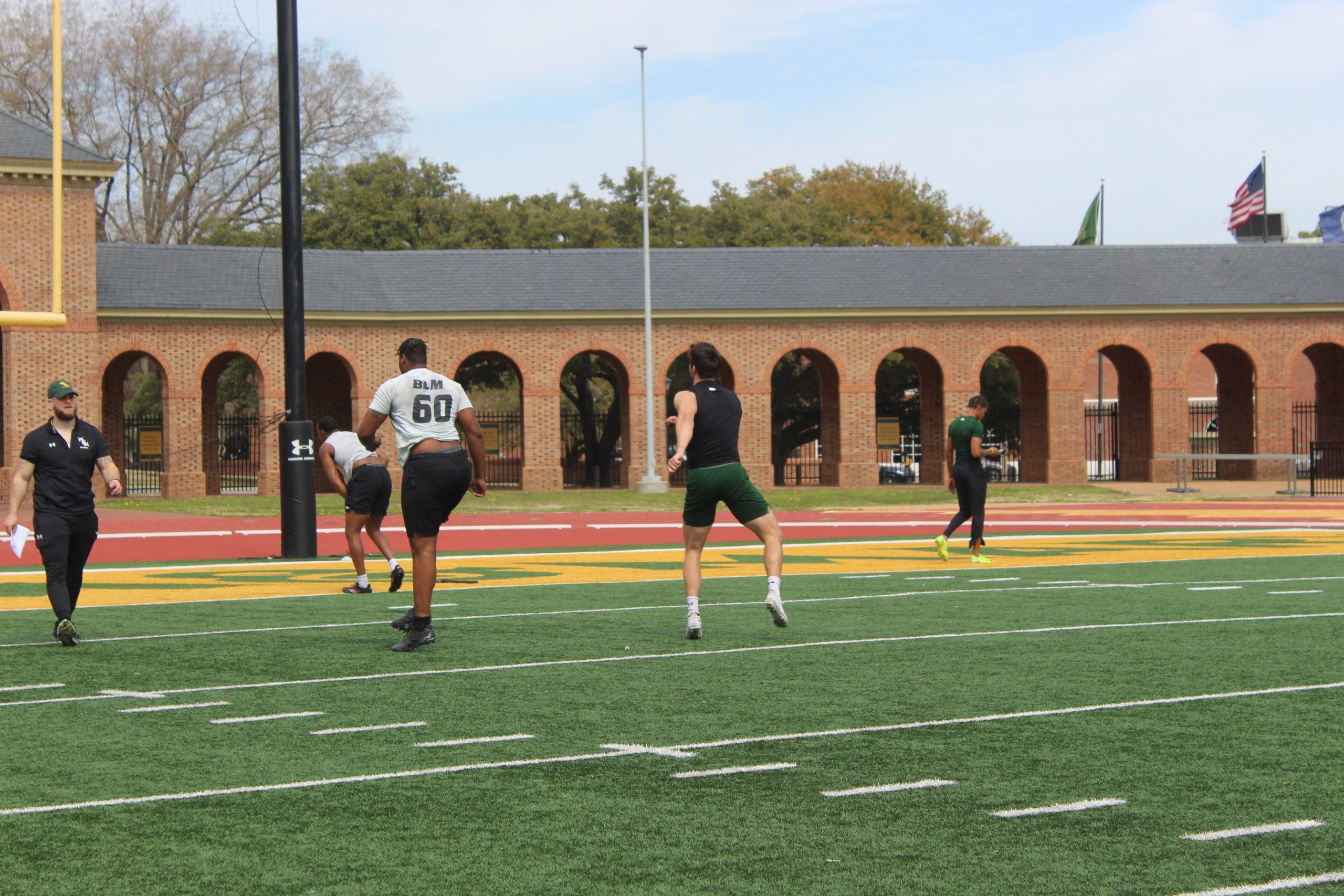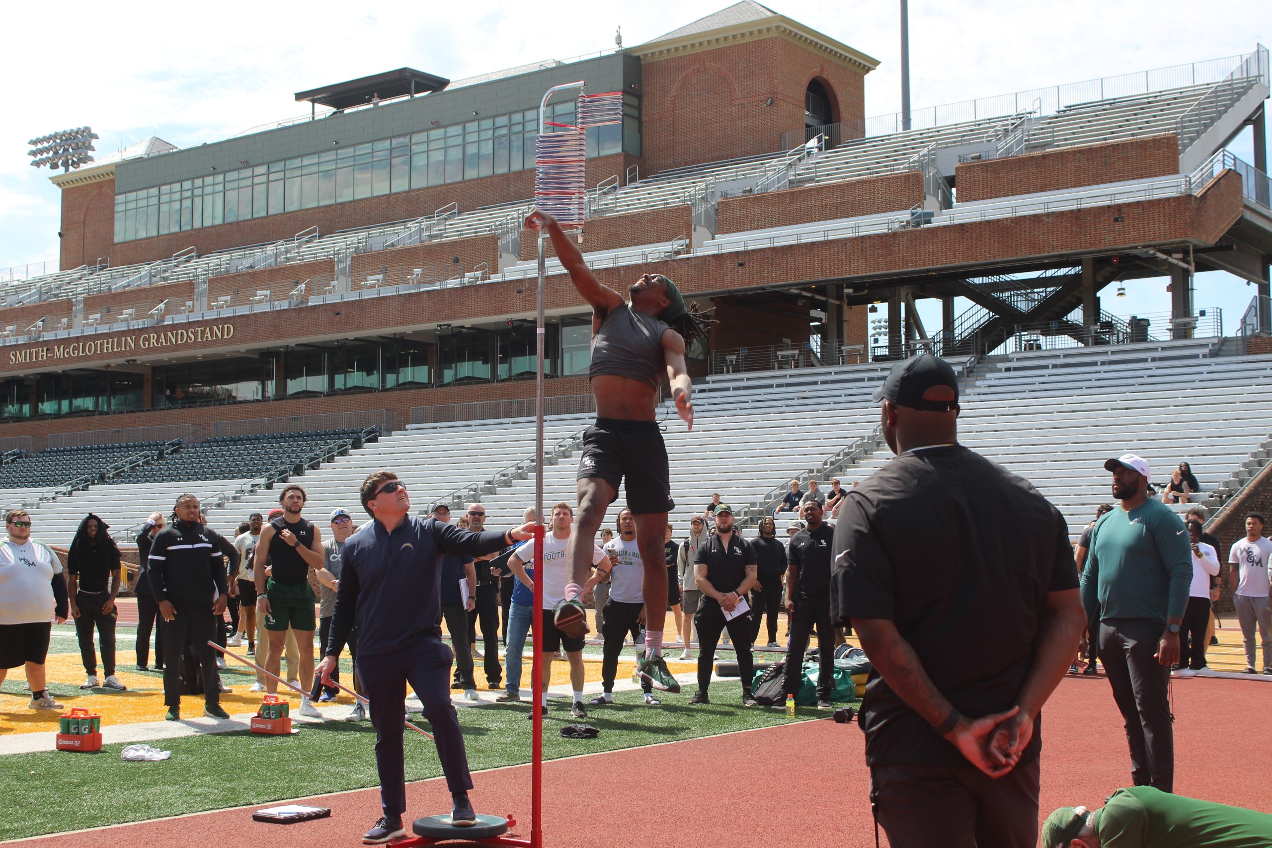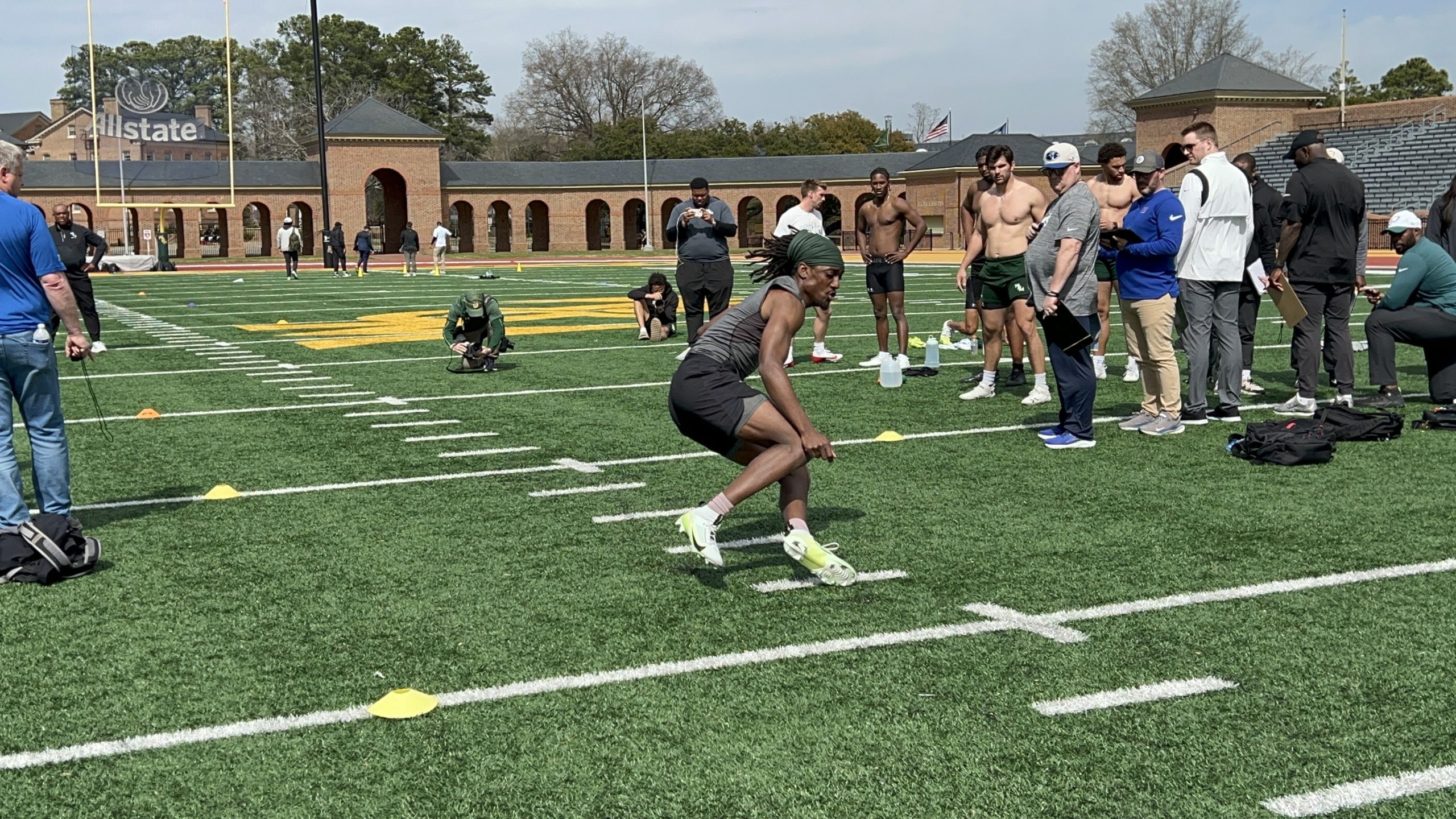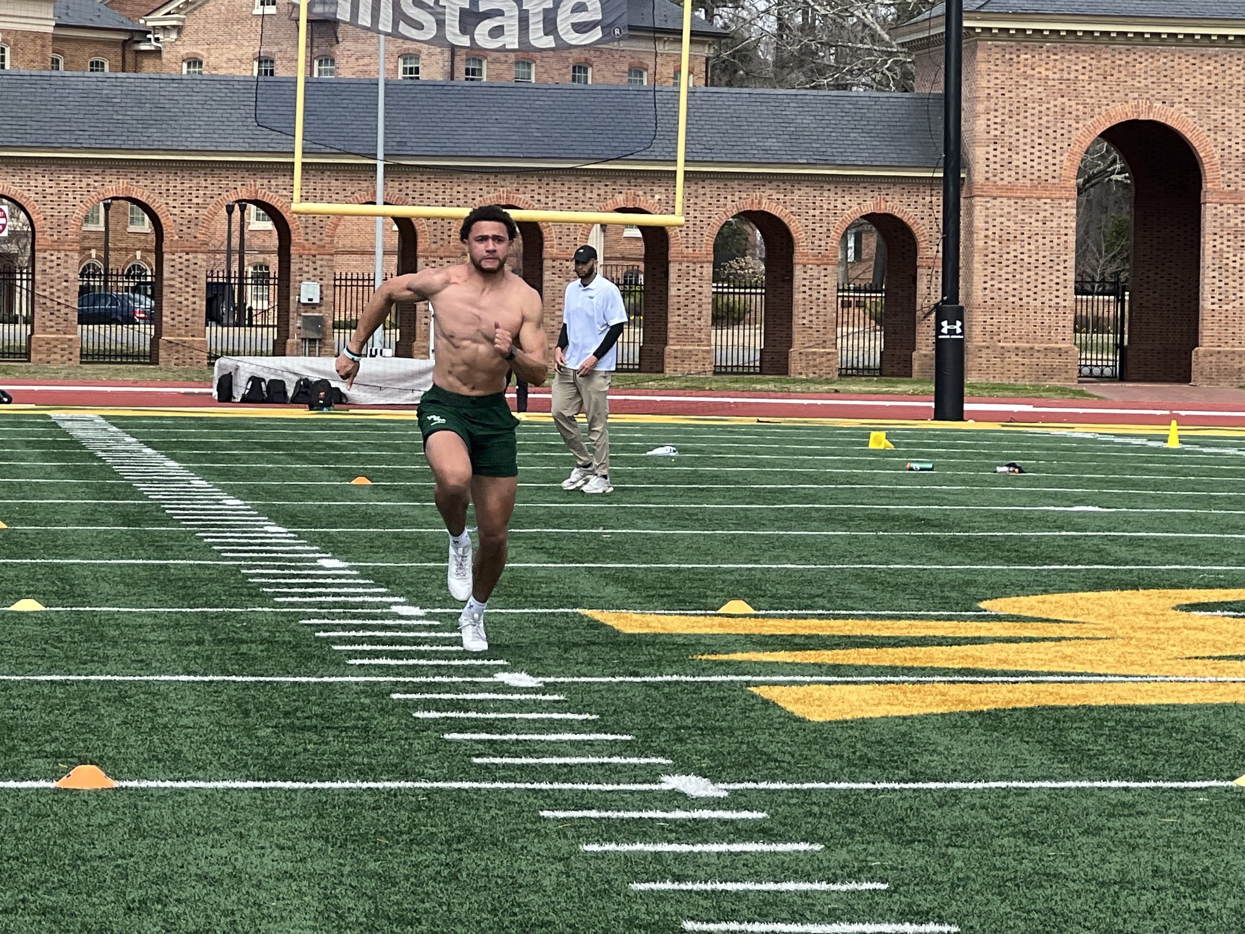 With the first step toward their NFL dreams on the line, working out were offensive lineman Charles Grant, defensive back Marcus Barnes, running back Bronson Yoder, athlete Hollis Mathis, linebacker Quinn Osborne, linebacker/defensive back hybrid Alex Washington, defensive back Jaedon Joyner, long snapper/outside linebacker Jonathan Hammond and wide receiver Matthew Akuchie.