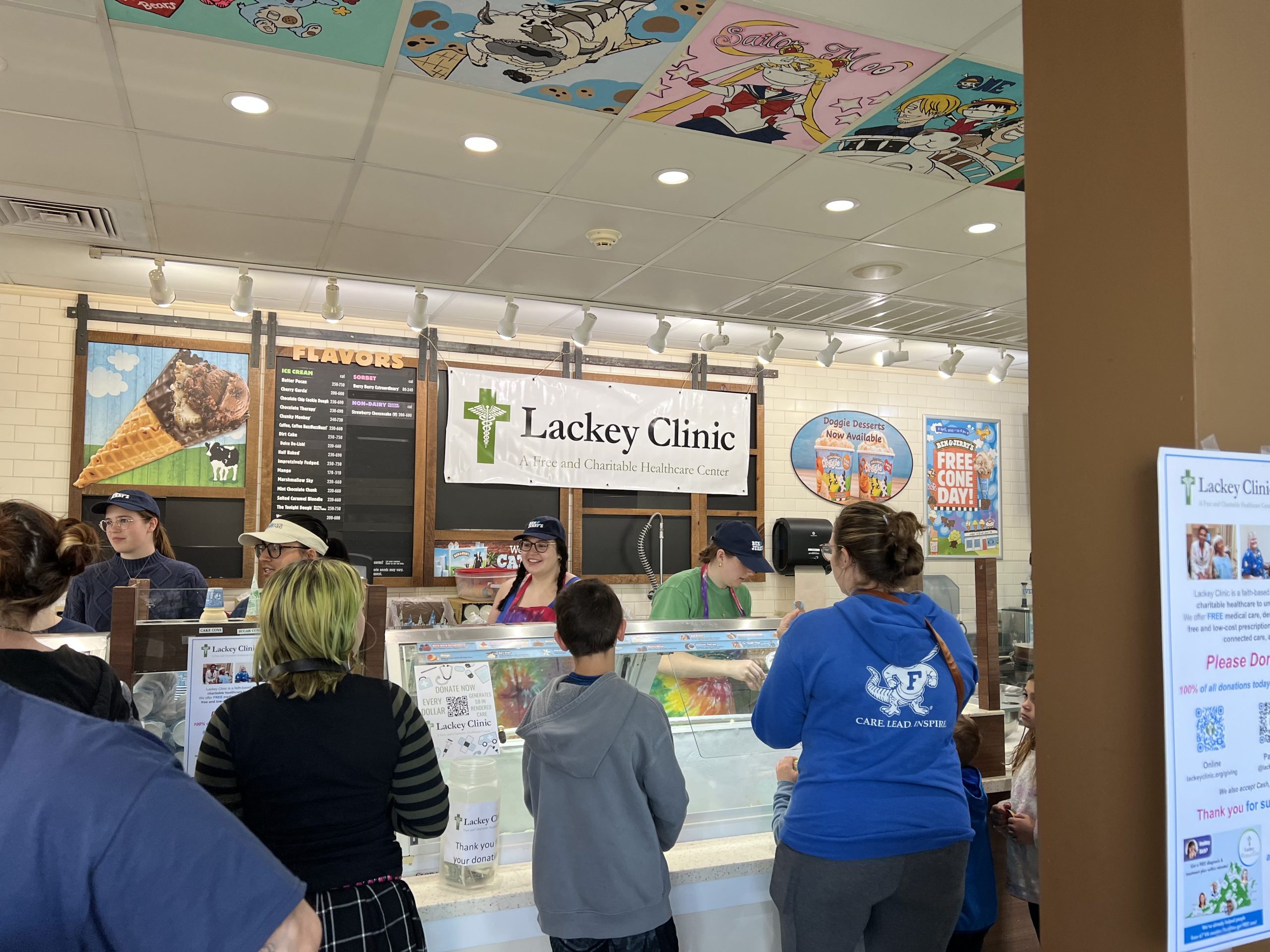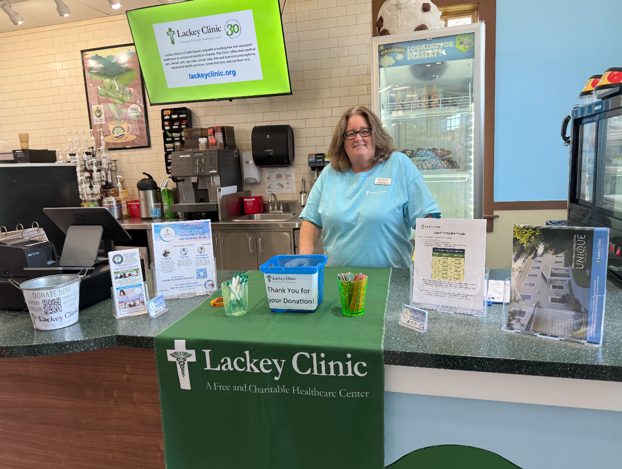 At the Yorktown location, customers were streaming in throughout the day. Each customer received free ice cream and had the opportunity to learn more about Lackey Clinic, a free clinic in the area that provides medical care, prescriptions and more.