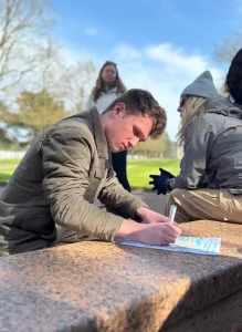 While at the Normandy American Cemetery and Memorial, select seniors visited both Clyde’s and Earl’s gravesites, where they performed a short ceremony and laid flowers. Students also wrote letters and cards to the brothers, which are now housed in a file at the cemetery where they will be preserved forever.