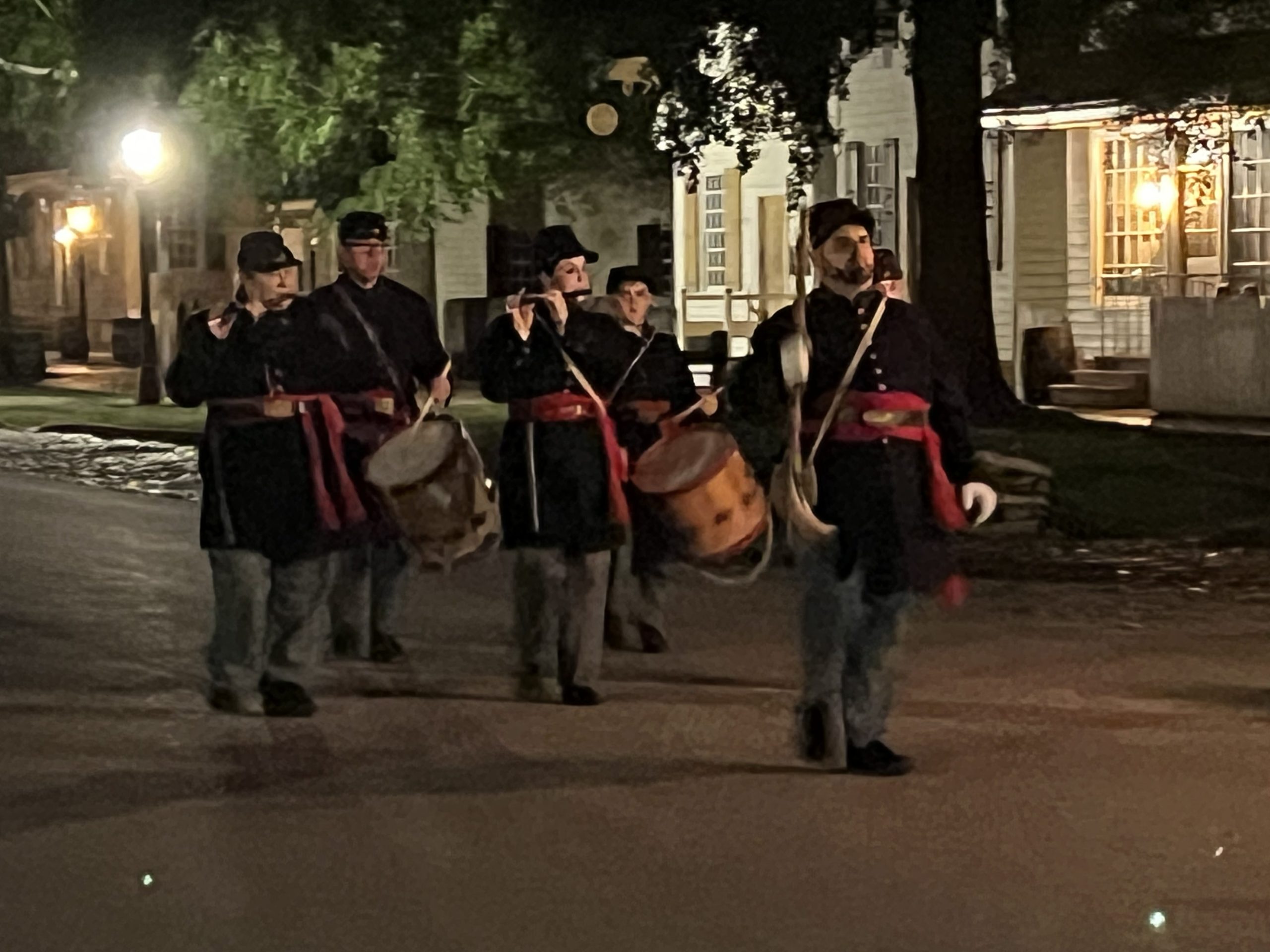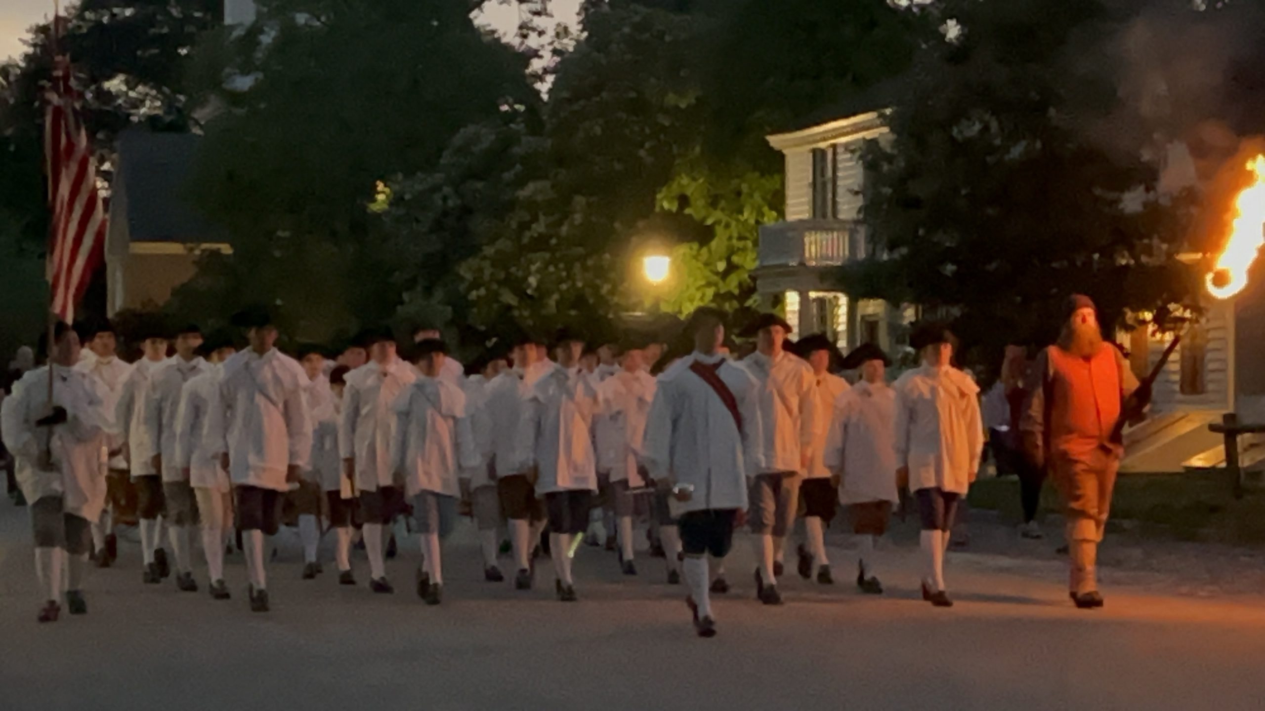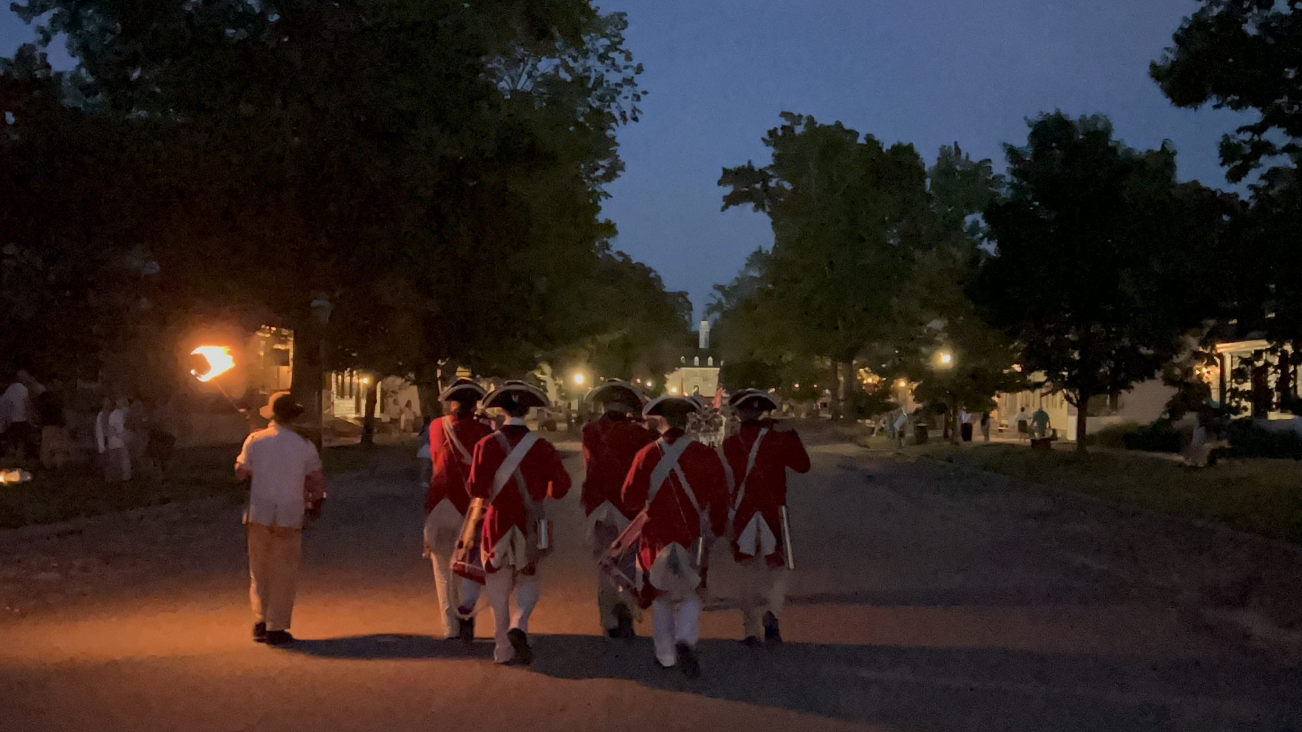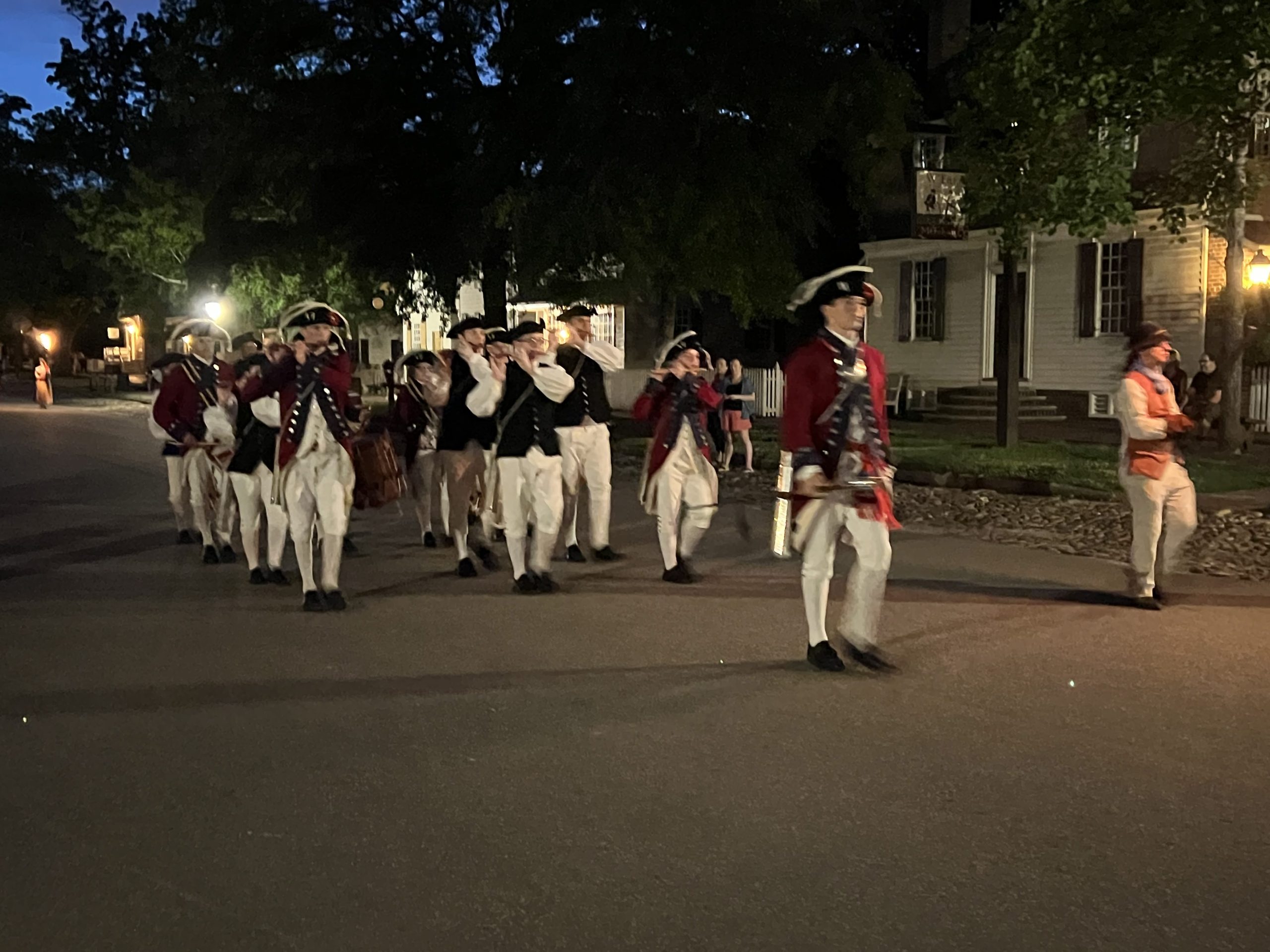 On May 17, visiting groups along with the Colonial Williamsburg Fifes and Drums participated in a torchlit march down Duke of Gloucester Street. The groups played 18th-century field music as they marched from the Palace Green to the Capitol during the parade.
