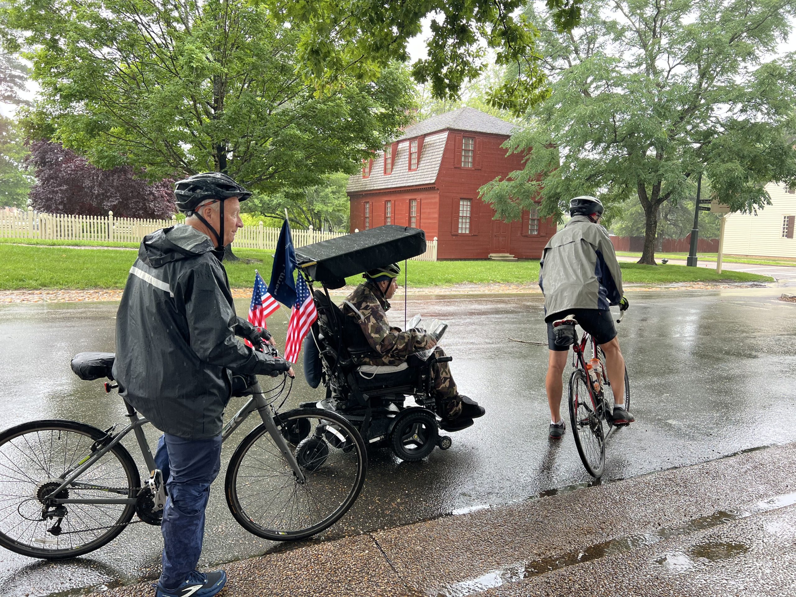 WILLIAMSBURG — Despite the rainy forecast, Army veteran Randall Pope arrived in Williamsburg after his first day on the road in his mission to raise money for multiple sclerosis research.