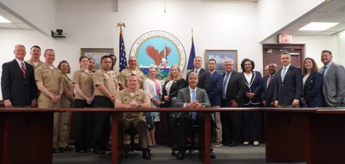 The treaty-style signing event allows York County’s largest employer, NWS Yorktown, the U.S. Navy and Dominion Energy Virginia to formally collaborate and illuminate the path forward to bring a reliable, resilient and responsible energy source to the installation. These energy sources include a natural gas plant, solar farm, energy storage and transmission options and even a Small Modular Reactor (SMR).