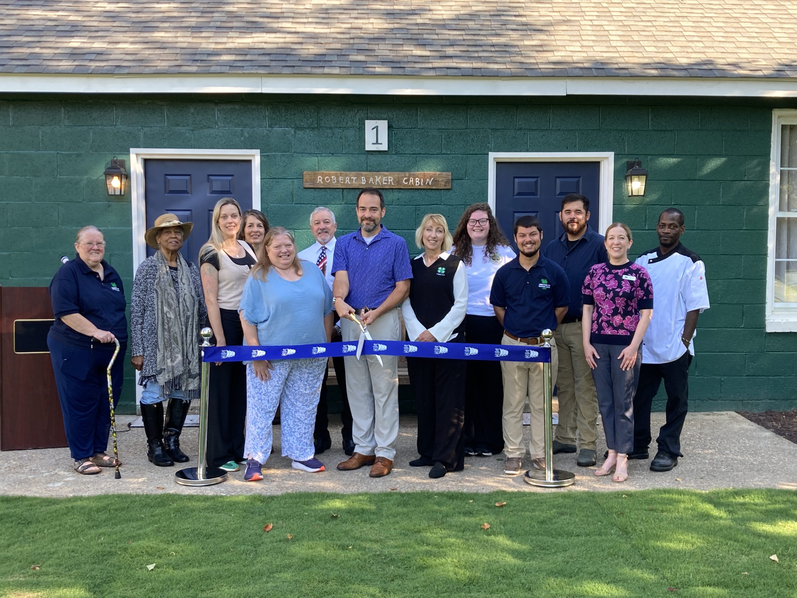 Local dignitaries joined the Jamestown 4-H community on the newly sodded grass surrounding the cabin for a ribbon-cutting ceremony.