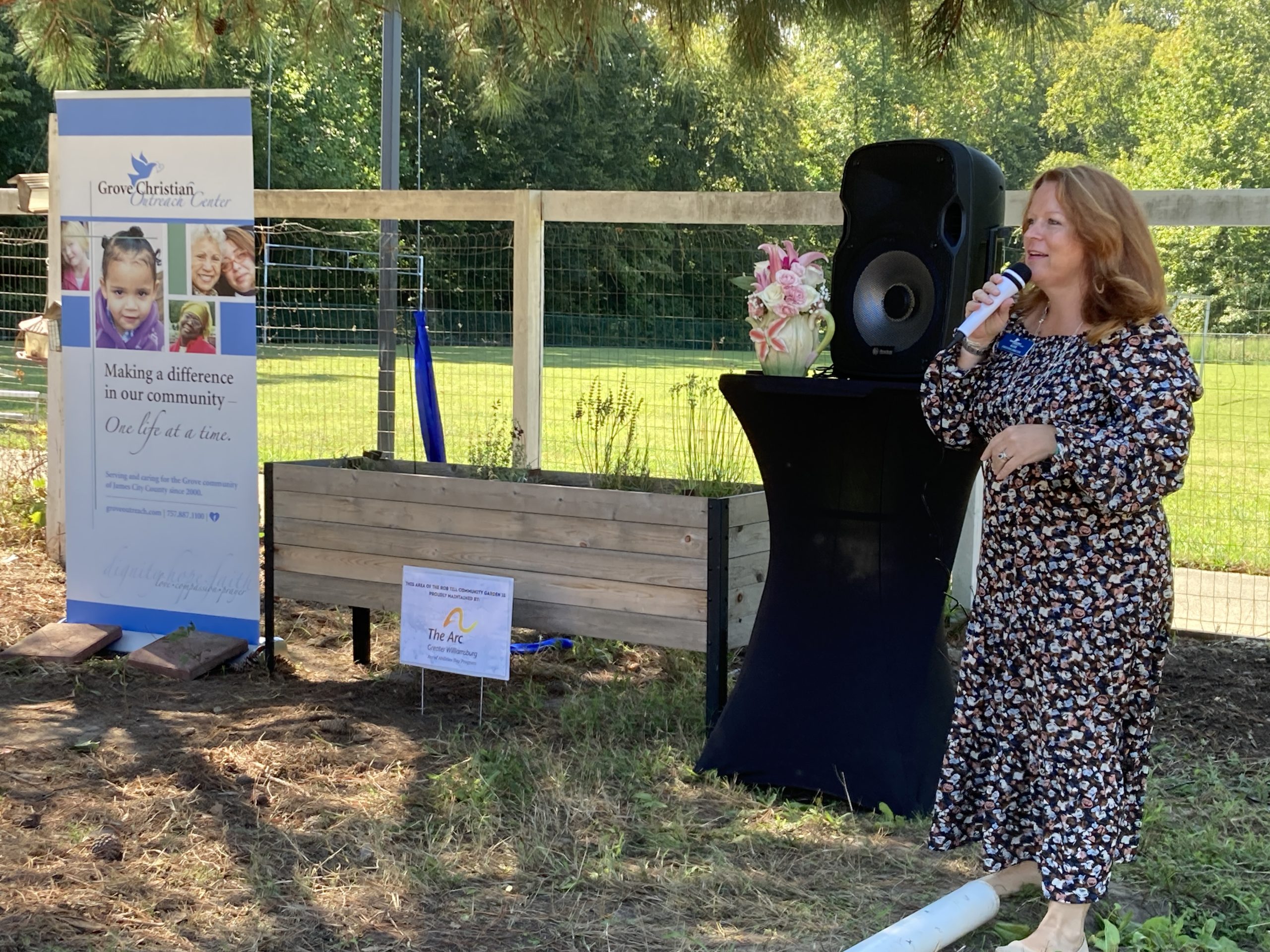 JAMES CITY COUNTY — Grove Christian Outreach Center re-dedicated the Rob Till Community Garden Saturday with a Garden Party and ribbon-cutting ceremony.