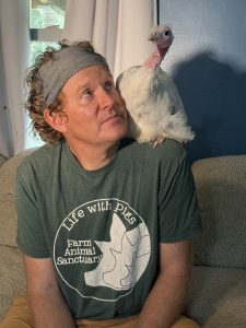 Ryan Phillips, the owner of Life with Pigs, grew up as a huge fan of the band Skid Row. When it came time to name one of the sanctuary’s newest turkeys, he honored one of his lifelong heroes, Rachel Bolan, bassist and primary songwriter for Skid Row.