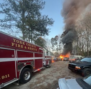 The department said that upon arrival, crews discovered multiple vehicles on fire in the storage yard behind the business. Firefighters quickly brought the situation under control, with the fire reported extinguished shortly after 6:00 p.m. Multiple York County Fire and Life Safety units responded to assist. No damage to the building was reported, and no injuries occurred.