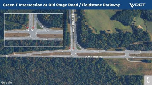 JAMES CITY COUNTY— Weather and schedule permitting, contractor crews with the Virginia Department of Transportation will begin striping new pavement markings overnight Thursday, March 5, to implement a permanent, unsignalized continuous “Green T” intersection at Fieldstone Parkway and Old Stage Road (Route 30). The work is part of the I-64 Gap Segment C Widening Project.