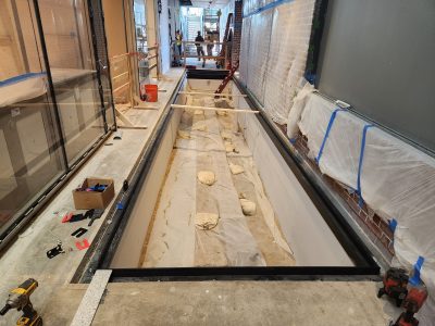 In addition, a portion of the foundation excavated will also be able to be observed along with a well uncovered during the building process through glass flooring.
