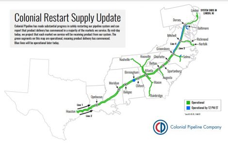 Colonial Pipeline announced Wednesday evening that it was restarting pipeline operations at 6 p.m. However, the restart would not be instantaneous, and will require several days for fuel to travel up the pipeline to some locations.