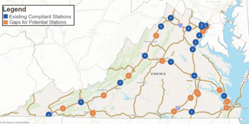 While neighboring states, including Maryland and North Carolina, have identified alternative fuel corridors outside the interstate system, Virginia’s eight existing and proposed corridors all lie along interstates.