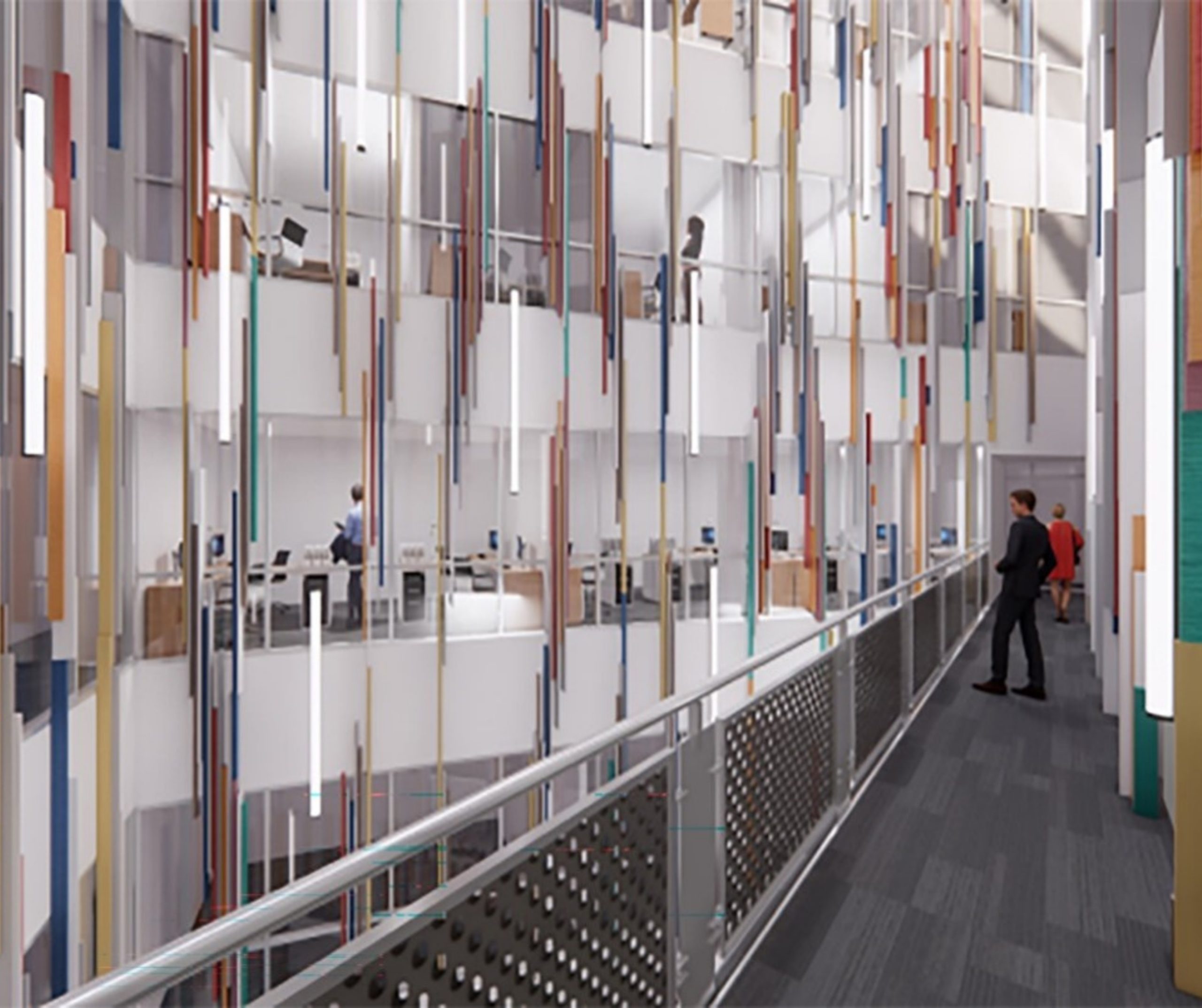 The architectural plan also includes enhancements to existing areas, such as the prism-shaped atrium that allows natural daylight into the building, according to the lab.