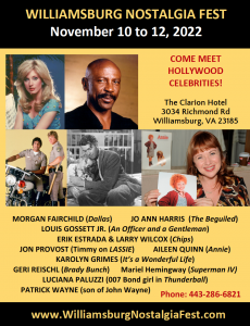 WILLIAMSBURG — Hollywood celebrities are coming to Williamsburg Nov. 10 through 12 for the annual Williamsburg Nostalgia Fest.