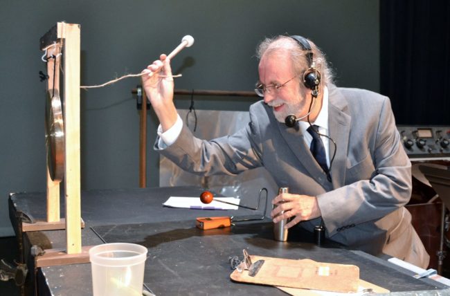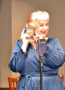 “All of it is backed by what I think of as the ‘rhythm section’ of old time radio, a golden voiced, and sometimes drunken, announcer played brilliantly by Ed Allmann, and live, on-stage sound effects created by foley artist John Trindle,” Hollands added.