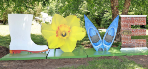 In the summer of 2021, Gloucester was added to this impressive roster with its own LOVE sign. The “L” represents a Guinea boot, named for a group of families who identify as some of the original families of the county and ties into Gloucester’s waterman history and culture. The “O” is in the shape of a daffodil, identifying the county’s daffodil industry and its Daffodil Festival. The “V” has two kayaks which represents the county’s water roadways. The “E,” which has a red brick motif, has the county’s founding date of 1651 represents its historic court circle.