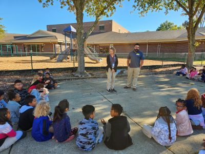WILLIAMSBURG — Third graders at James River Elementary received a presentation from farmer Justin Diaz and Dusty the Chicken on vegetable growing and chickens Thursday, Oct. 6.